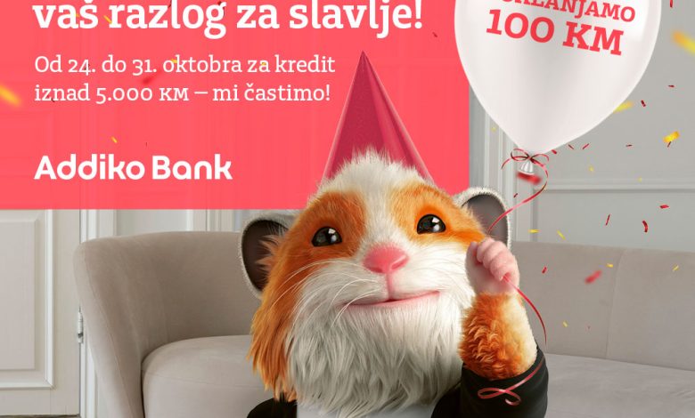 – Rođendan je savršena prilika da podijelimo radost sa našim klijentima, a rođendanska ponuda je naš način da zahvalimo klijentima na povjerenju i dodatno podržimo njihove planove. Uz jednostavan proces apliciranja i brzo odobrenje, klijenti mogu doći do potrebnih sredstava, a Addiko će uz svaki odobren kredit klijente obradovati poklonom od 100 KM jer slavlje je ljepše kad se dijeli – izjavila je Sanja Babić, Direktor Odjela upravljanja prodajom za retail kiijente.