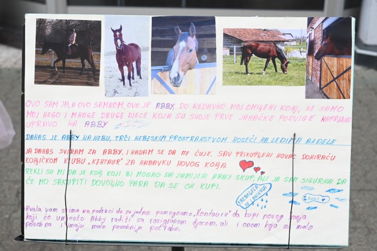 "Divna kobila koja je bila obučena da radi sa djecom sa poteškoćama u razvoju prije par dana je uginula od jake bolesti. Abby mi je bila omiljena. Na njoj sam naučila četkati konja, a na njoj sam prvi put odradila i trening", prisjeća se Vanja za "Nezavisne novine".