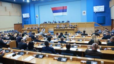 Policija sa dugim cijevima ispred Palate Republike i NSRS u Banjaluci