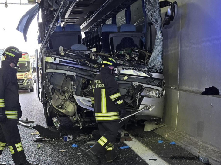 Učiteljica stara 43 godine poginula je na mjestu, dok su vozač autobusa i dvoje djece povrijeđeni, javljaju talijanski mediji.