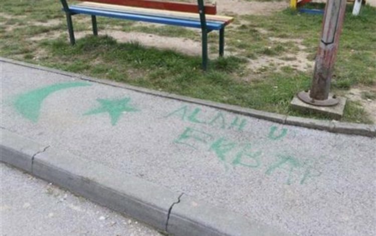U banjalučkoj Ulici Krajiških brigada 153 na trotoaru u blizini dječijeg igrališta neko je sprejem napisao "Alahu ekber", što je ubrzo precrtano.