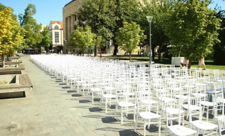 U centru Banjaluke postavljeno je 1616 praznih stolica, sa imenima nestalih civila i vojnika u ratu, koji nikad nisu pronađeni.