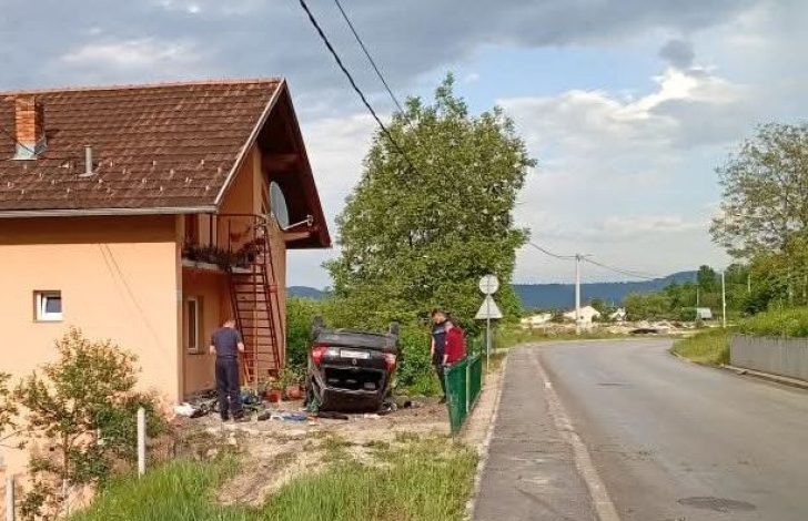 Automobil „pežo“ izletio je danas sa puta koji povezuje banjalučka naselja Petrićevac i Motike i završio na krovu.