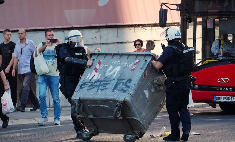 U Beogradu, blokiran je saobraćaj na više lokacija, a prisutni su i pripadnici interventne jedinice, koji na nekim raskrsnicama potiskuju građane sa ulice na trotoar, prenosi 021.rs.