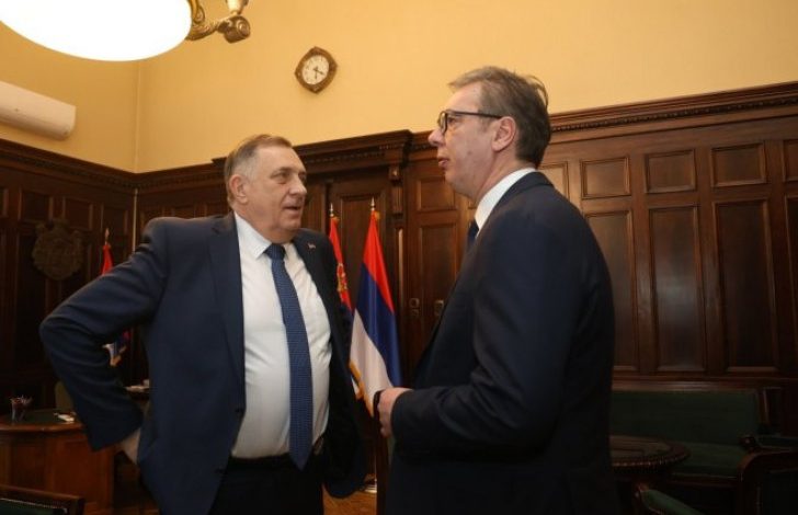 Predsjednik Republike Srpske Milorad Dodik uoči velikog skupa "Ne damo Srbiju", sastao se sa predsjednikom Srbije Aleksandrom Vučićem.