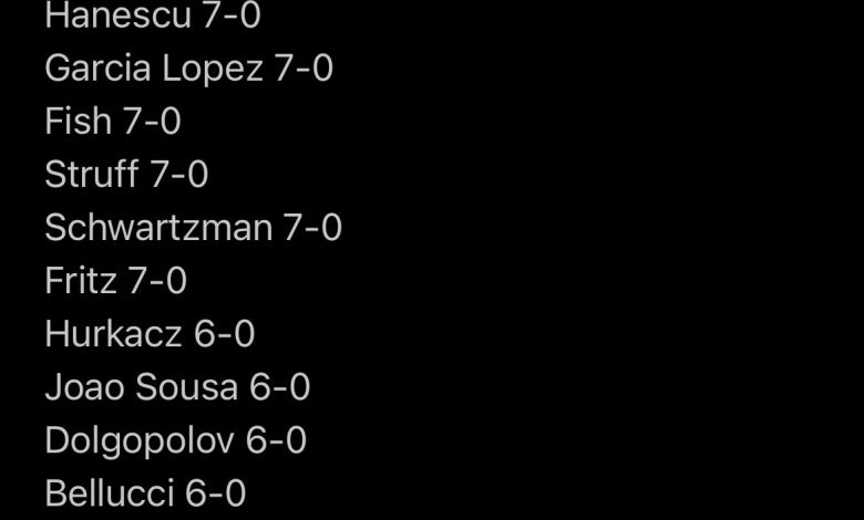 Monfis, Šardi, Sepi, Raonić, Bagdatis, Fonjini,Šapovalov, Monako, Hanesku, Garsija Lopes, Fiš, Štruf, Švarcman, Fric, Furkač.. Dug je spisak igrača koji sa Đokovićem izvjesno vrijeme ne znaju za pobjedu, navodi Alo.