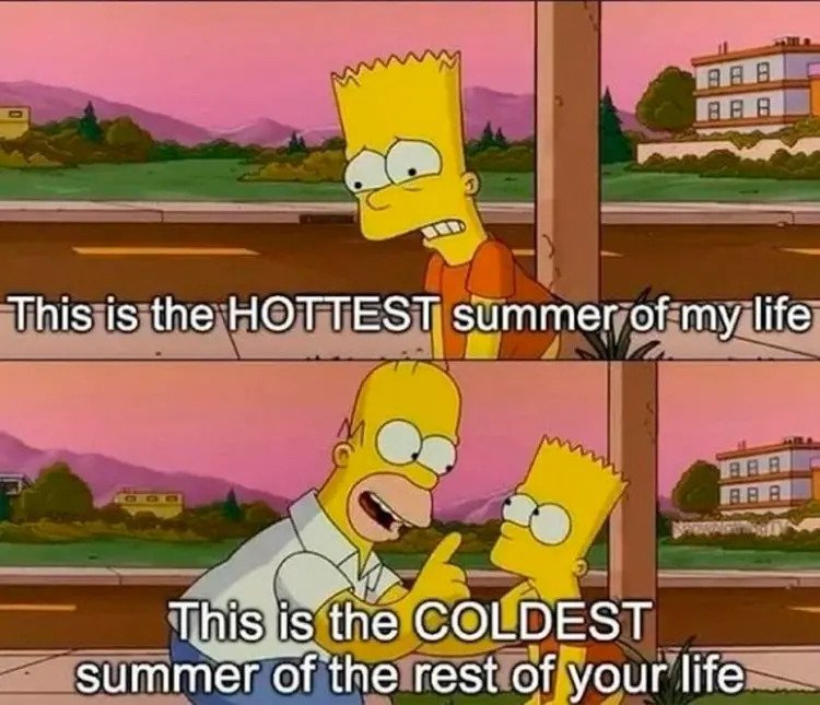 Konkretno, u memu se animirani lik Bart Simpson žali da je ovo najvrelije ljeto njegovog života, a njegov otac Homer odgovara tumačenjem da je to najhladnije ljeto ostatka njegovog života. Nameće se pitanje koliko je i šta je točno u ovom memu.
