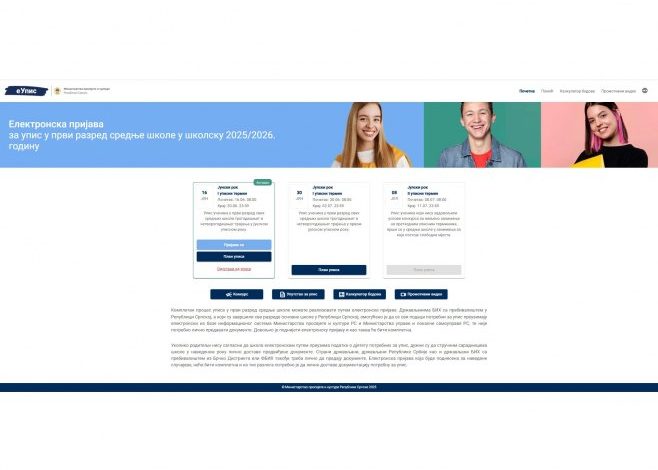 Učenici elektronsku prijavu za upis u prve razrede srednjih škola mogu da popune OVDЈE.