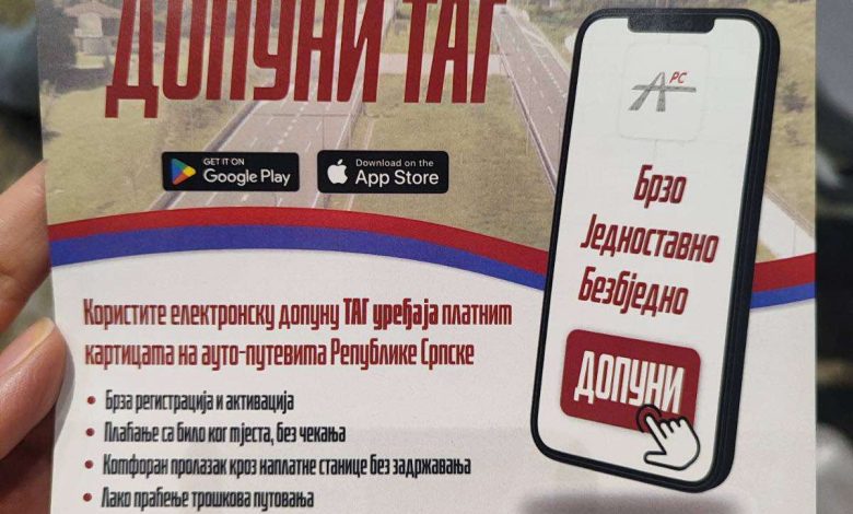 Vozači u Republici Srpskoj od sada putem mobilne aplikacije "Autoputevi RS-ENP" mogu brzo i jednostavno dopuniti svoje TAG uređaje zahvaljujući kojima prolaze bez zadržavanja na naplatnim kućicama.