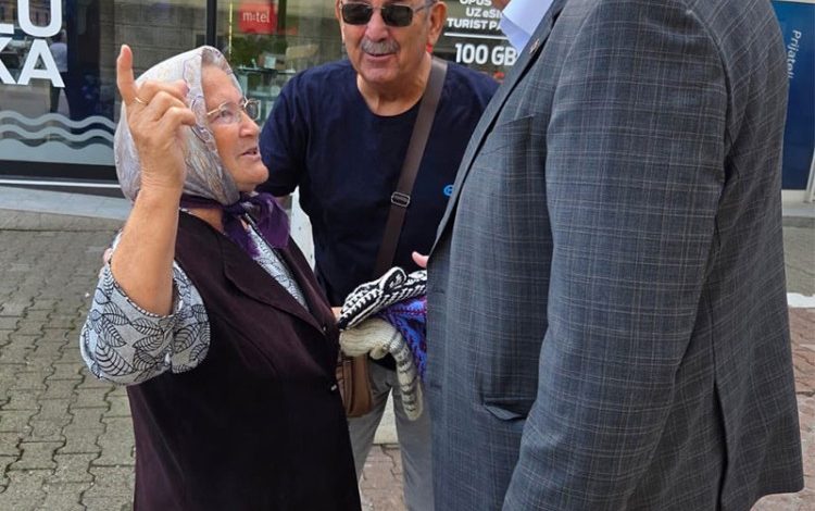 Predsjednik Republike Srpske Milorad Dodik prošetao je danas Banjalukom što je iskoristio da porazgovara sa građanima, kao i sa jednom staricom koja prodaje priglavke.