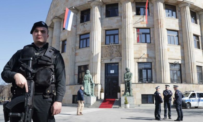 Ispred zgrade Palate Republike Srpske u Banjaluci jutros se nalazi veći broj policajaca.