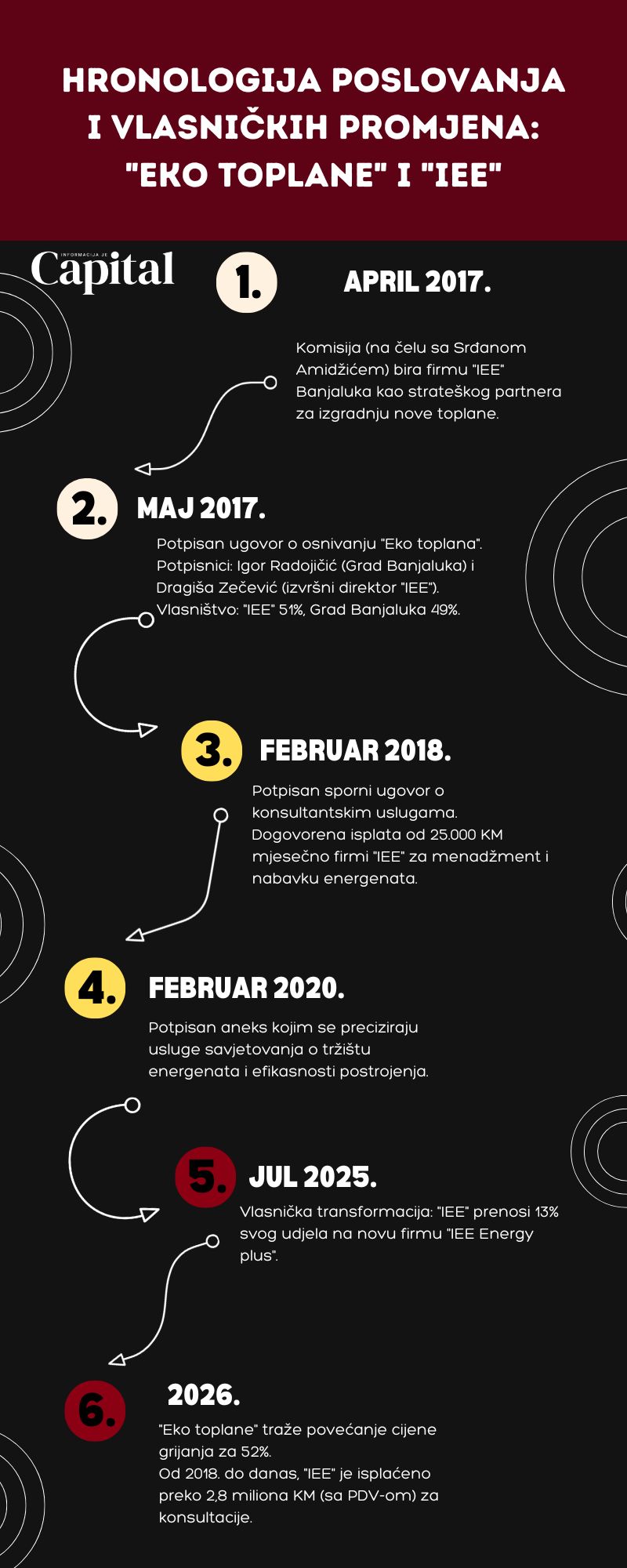 Prema tom ugovoru iz 2018. godine u koji je CAPITAL imao uvid, „Eko toplane“ firmi „IEE“ svaki mjesec u posljednjih osam godina plaćaju 25.000 KM za ono što bi kao svoj redovan posao trebalo da radi rukovodstvo „Eko toplana“.