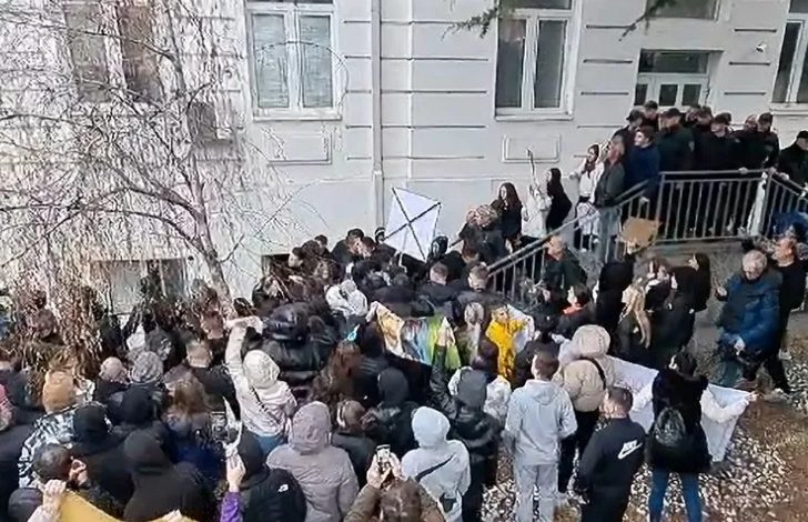 Nekoliko desetina, uglavnom mladih, nalazi se ispred opštine, a policija stoji ispred ulaza i brani im da uđu u zgradu.