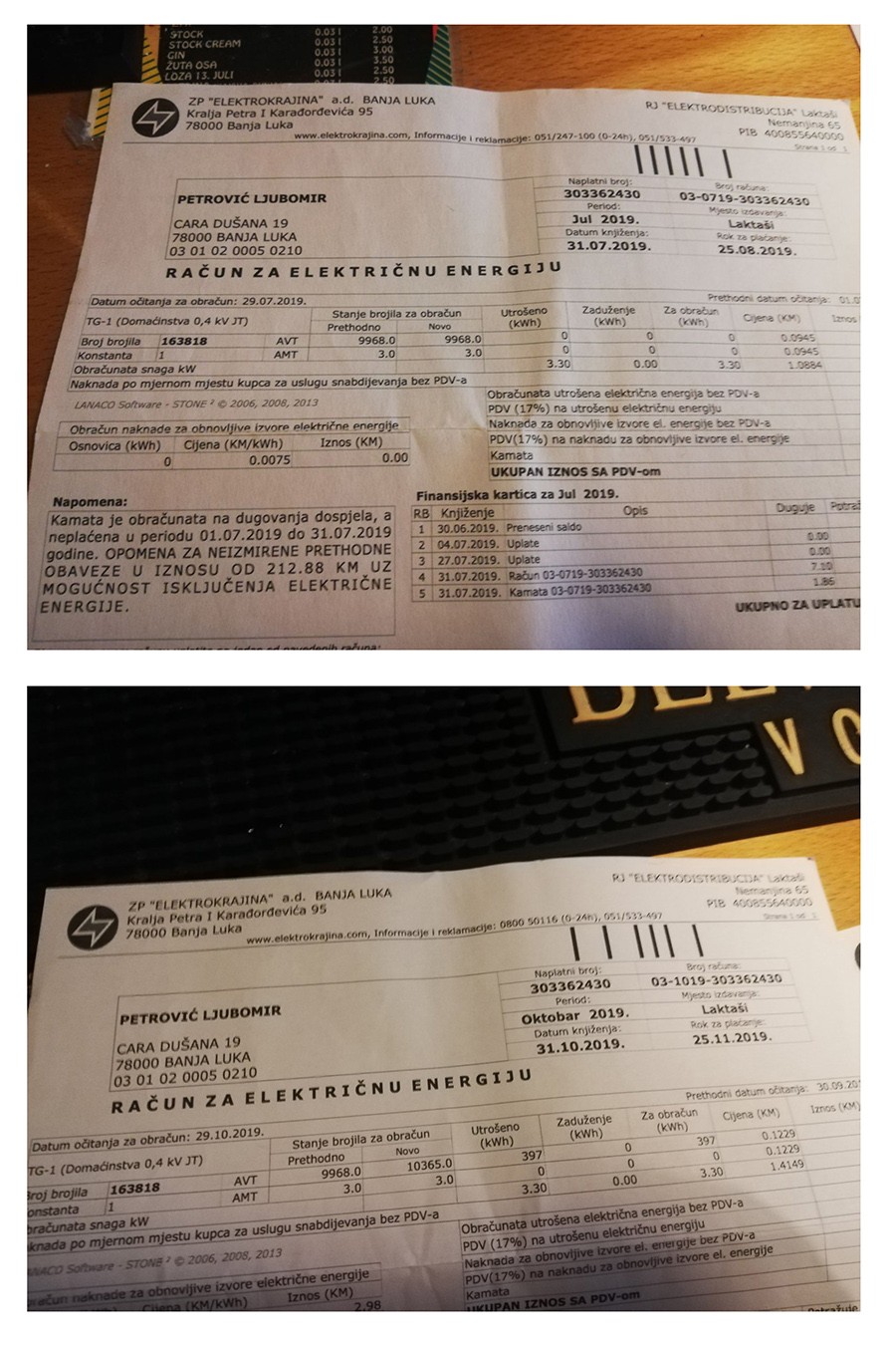 Prema njegovim riječima, dešavalo se ranije i da mu u Banjaluci dođe račun za struju na kojem piše da je potrošio mnogo više kilovata nego što jeste.