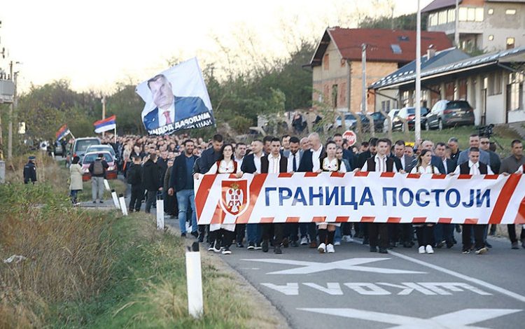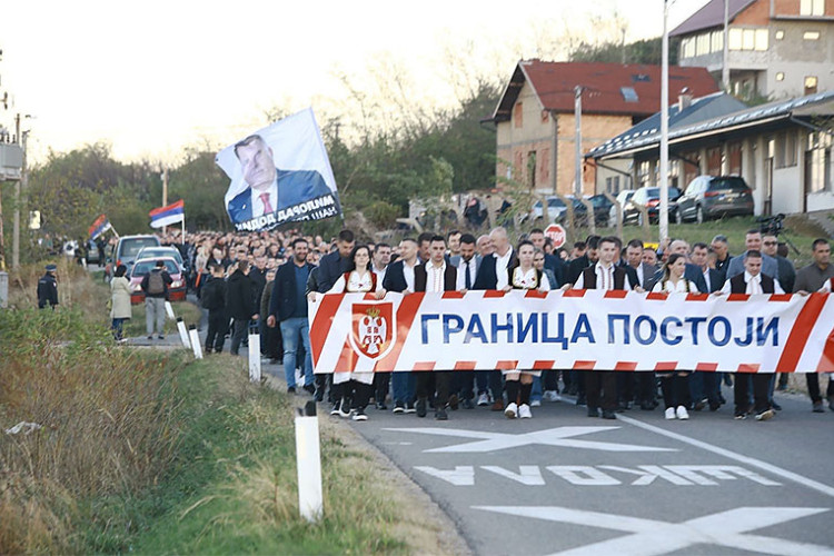 Više od 2.800 građana je mirnom šetnjom, sa lokacije Crveno brdo prema entitetskoj granici između opština Ugljevik i Teočak, obilježilo skup podrške institucijama Republike Srpske pod sloganom "Granica postoji".