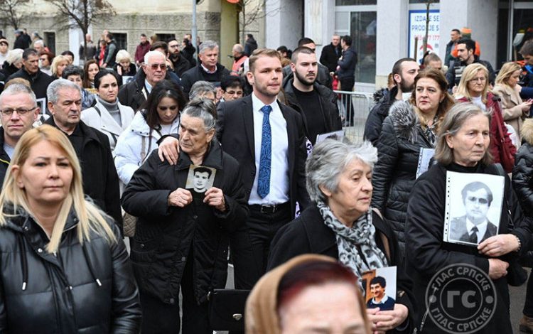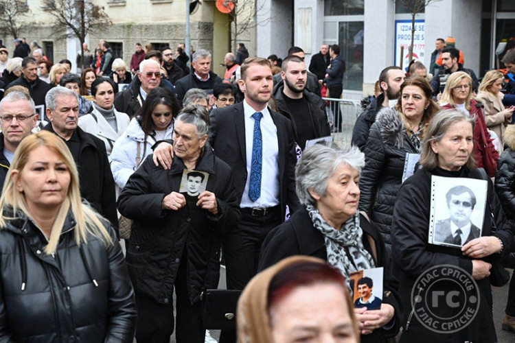 Članovi porodica poginulih boraca sa fotografijama svojih najmilijih okupili su se ispred Gradske uprave u Banjoj Luci odakle „Hodom časti“ obilježavaju 9. januar, Dan Republike Srpske.