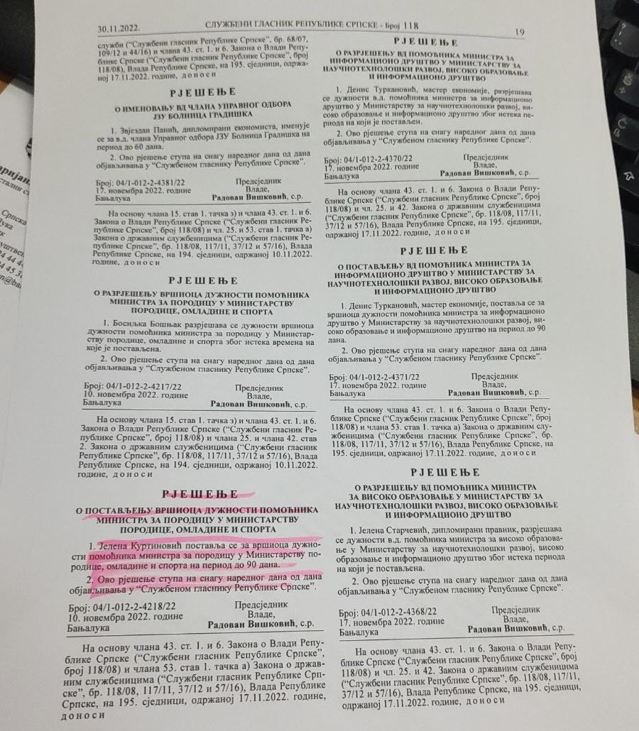 — Gradonačelnik nema kadrovsku politiku koju dogovara sa SNSD. Istina je da je Jelena Kurtinović odlukom Vlade Republike Srpske imenovana na mjesto vd pomoćnice ministra za porodicu u Ministarstvu porodice, omladine i sporta i ova odluka je 1. decembra stupila na snagu. Dakle, sama je prihvatila drugu poziciju koja joj je pripala raspodjelom funkcija unutar vladajuće koalicije kao kadru Socijalističke partije – rekla je Savić – Banjac.