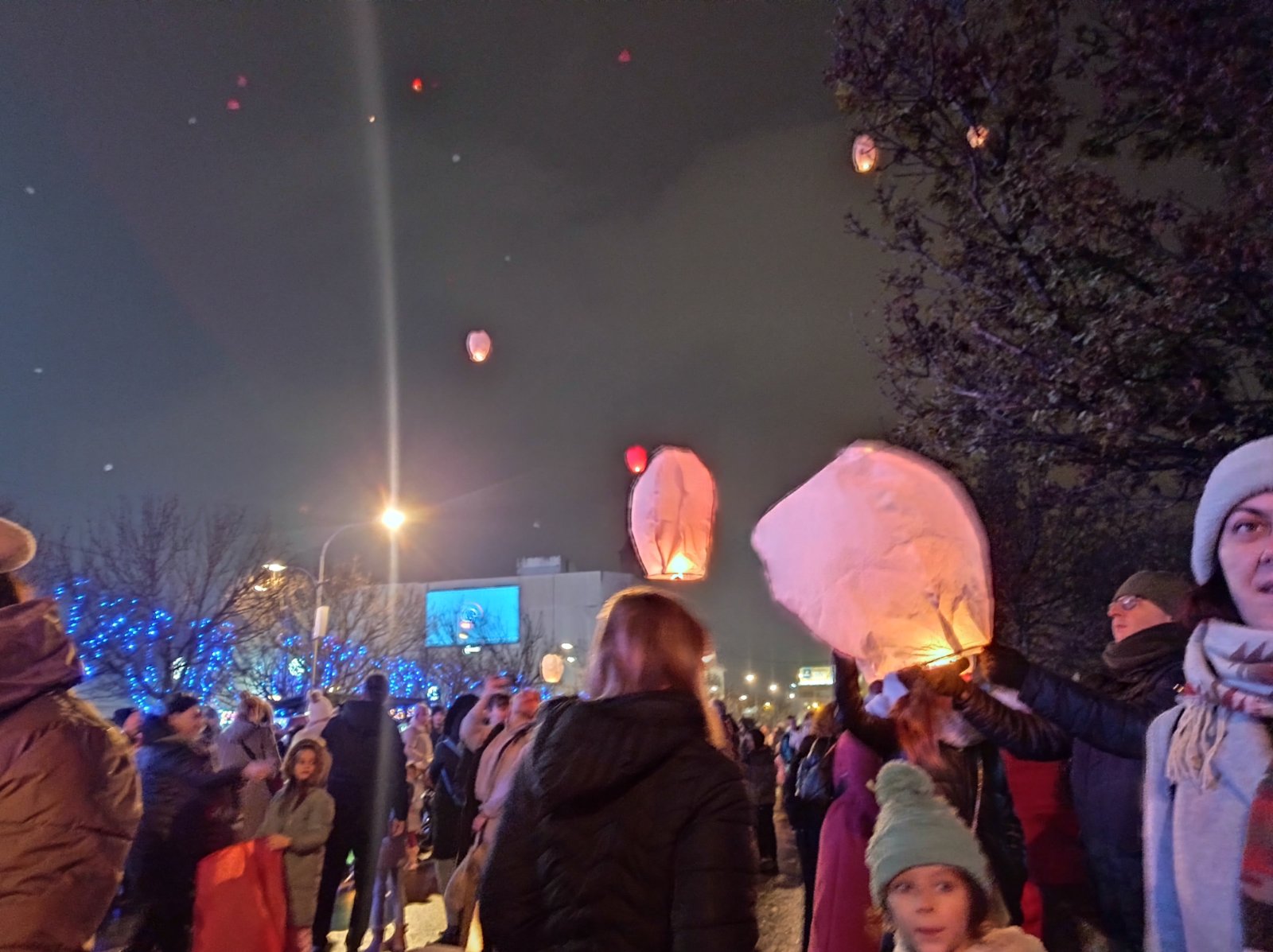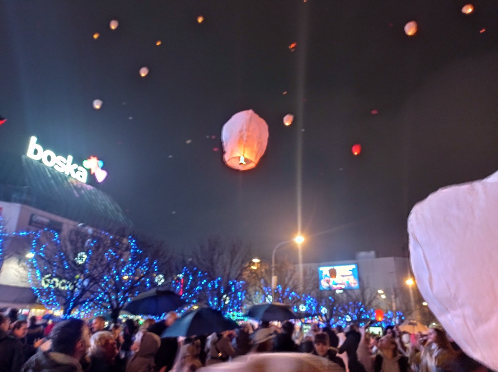 Mnogobrojni građani prosustvovali su večeras svečanom otvaranju zimske sezone u gradu na Vrbasu. Okupljeni su puštali lampinjone, a mališane je najviše oduševio dolazak Djeda Mraza koji se užetom spustio sa zgrade "Malbašić".