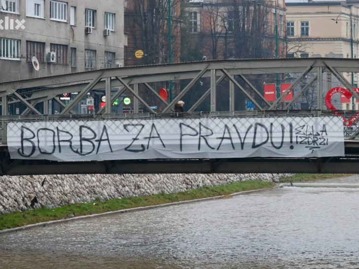 Na mostu na Skenderiji u Sarajevu postavljen je transparent podrške Eli .
