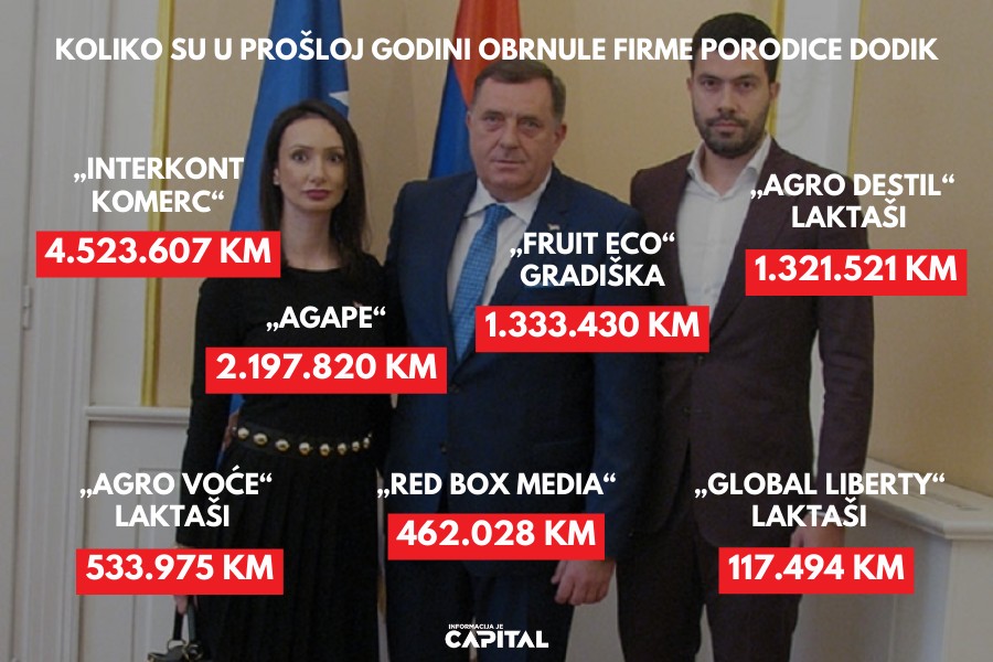 Podsjetimo, kako je CAPITAL nedavno pisao, pojedine firme porodice Dodik su na ime podsticaja iz Budžeta Republike Srpske uzele oko 311.000 KM.