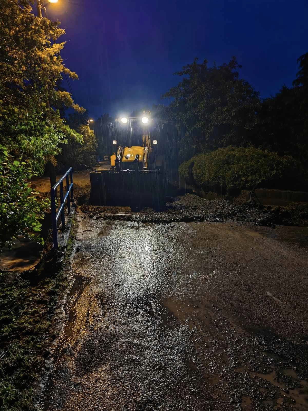 Pred mnogim stanovnicima ugroženih područja je još jedna teška i neizvjesna noć. Načelnik opštine Teslić Milan Miličević je večeras u obilasku terena sa svojim saradnicima, a dežurne službe i mehanizacija rade u punom kapacitetu na privremenom otklanjanju štete na putnim komunikacijama i imovini.