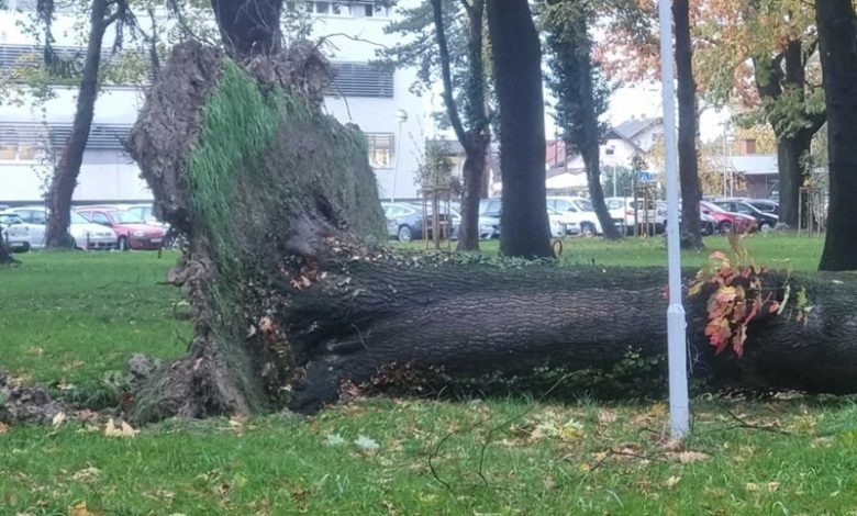 Olujni vjetar pogodio je i Međimurje, a posebno Čakovec, gdje su zabilježeni snažni udari koji su lomili grane i rušili stabla. U parku čakovečke bolnice vjetar je tokom noći iz korijena iščupao veliko stablo.
