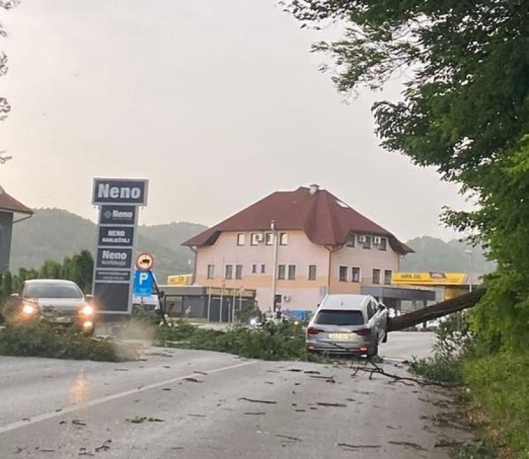 Vremenska nepogoda je ostavila svoj trag i u Tesliću. Tamo je snažan vjetar oborio stablo preko saobraćajnice, gdje se jedan automobil "nasukao".