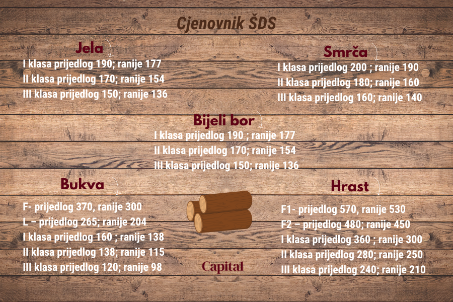 Prema novom cjenovniku, najviše je poskupio tzv. „L“ trupac bukve koji je po kvalitet odmah iza najkvalitetnijih furnirskih „F“ trupaca i umjesto dosadašnjih 204 KM sada košta 265 KM po kubiku, dok „F“ trupci umjesto 300 KM sada koštaju 370 KM po kubiku.