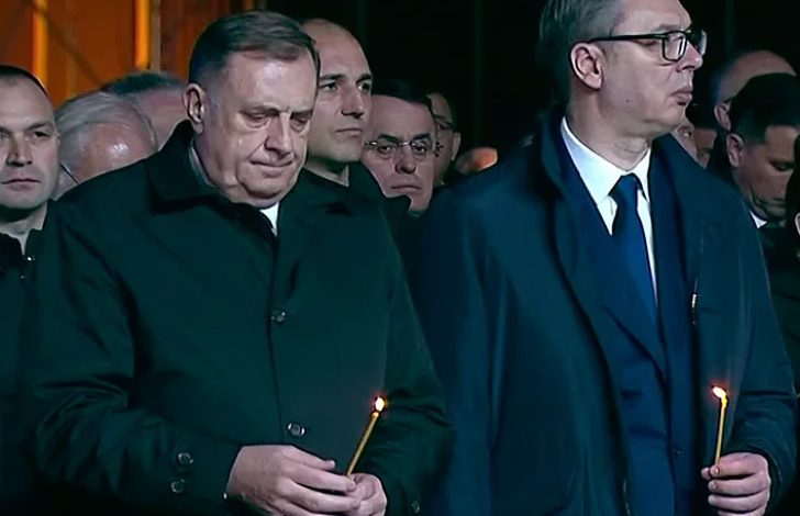 Obilježavanju prisustvuje predsjednik Republike Srpske Milorad Dodik i predsjednik Srbije Aleksandar Vučić.