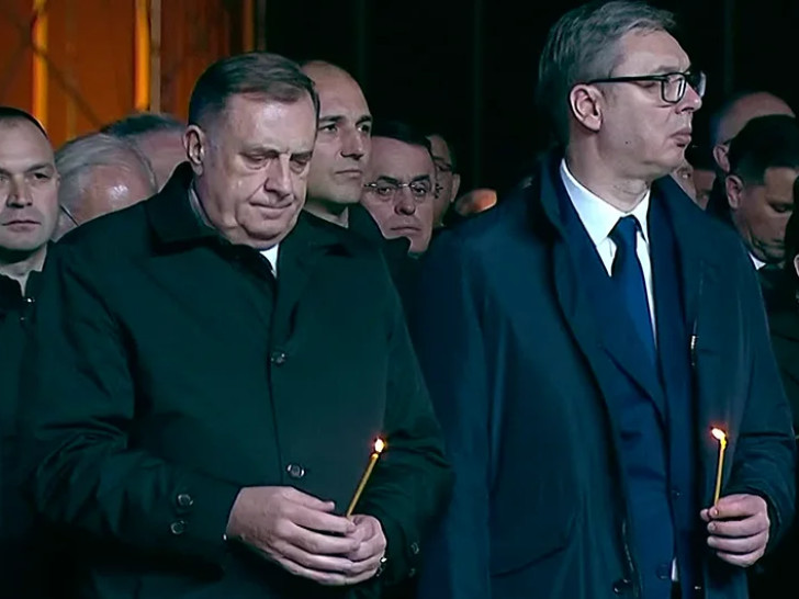 Obilježavanju prisustvuje predsjednik Republike Srpske Milorad Dodik i predsjednik Srbije Aleksandar Vučić.