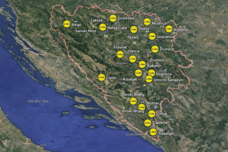 Njemačka trgovačka kompanija Lidl intenzivno se priprema za ulazak na tržište Bosne i Hercegovine, a lista gradova u kojima planira otvoriti svoje prodavnice sve je duža. BiznisInfo.ba donosi ekskluzivnu mapu i pregled lokacija na kojima je Lidl već izgradio objekte, gdje je gradnja u toku ili se tek priprema.