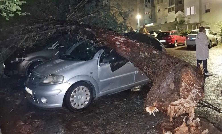 U nevremenu, koje je Mostar zahvatilo sinoć oko 23.00 časa, najteže je pogođeno naselje Bijeli Brijeg gdje su udari vjetra iščupali stabla iz korijena, a brojne polomljene grane završile su na parkiranim automobilima.
