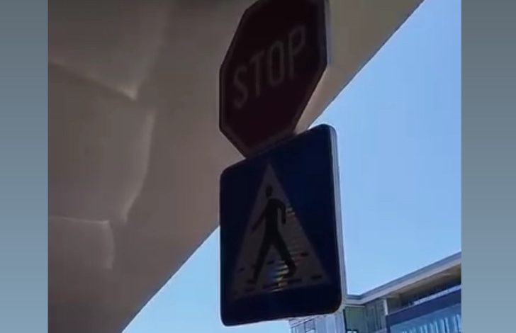 Naime, kako se vidi na snimku i fotografijama, znak se pomjera i malo jači vjetar mogao bi da ga sruši.