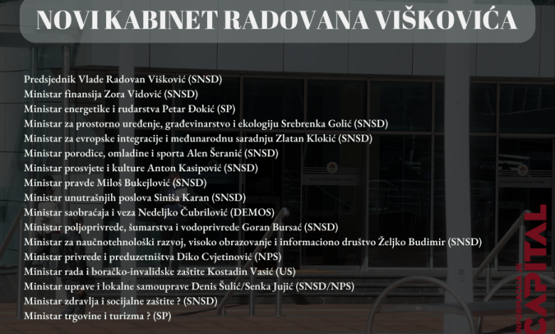 Četiri aktuelna ministra zadržaće svoje resore i novom kabinetu Radovana Viškovića, dva ministra će na čelo drugih resora, a u novoj Vladi Srpske sjediće deset novih imena, otkriva CAPITAL.