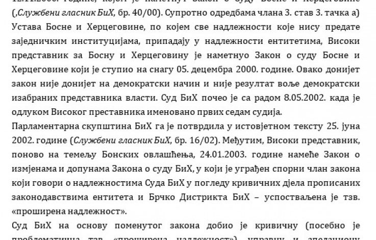 – Narodna skupština RS povlači saglasnost koju je Zaključcima NSRS od 25. februara 2004. godine dala Vladi RS za potpisivanje Sporazuma o prenošenju određenih odgovornosti Republike Srpske kroz uspostavljanje VSTS-a BIH – navedeno je u u prvom zaključku.