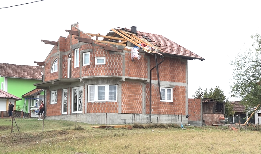 U samo nekoliko minuta porodica Vukelić iz Kalaba kod Prnjavora ostala je bez krova nad glavom. Olujni vjetar je krovnu konstrukciju bukvalno oduvao na obližnji livadu, a stradali su krovovi pomoćnih objekata, kao i stabla voćki u dvorištu. Srećom u novoizgrađenoj kući nije bilo nikoga dok je trajalo nevrijeme. Domaćin Mirosalv priča da je sa suprugom, dvoje male djece i trećim na putu na jesen trebao da se useli u novu kuću.