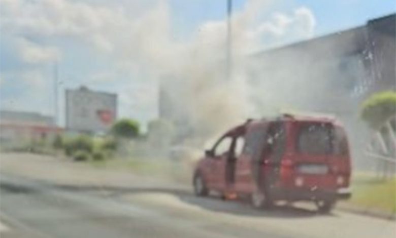 Kako se na vidi na fotografiji objavljenoj na društenim mrežama, kombi se zapalio u naselju Tunjice.