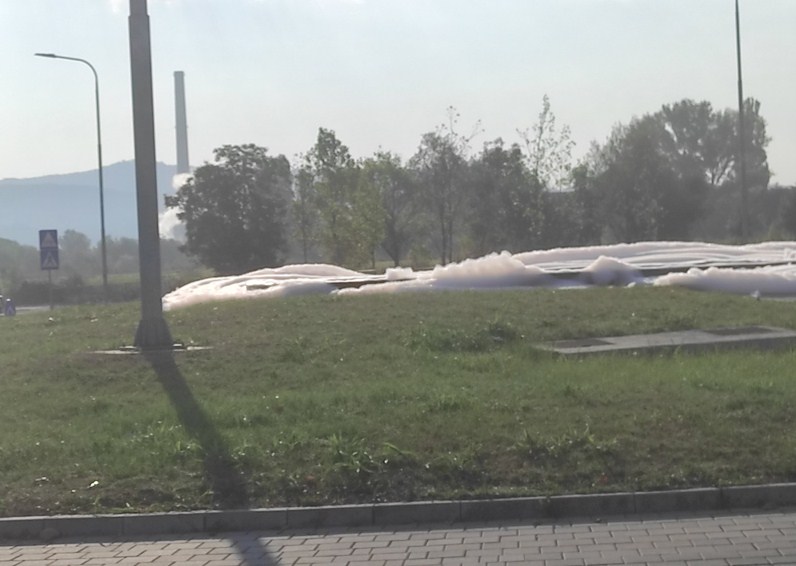 Naime, fontana koja se nalazi na sredini ovog kružnog toka puna je pjene.