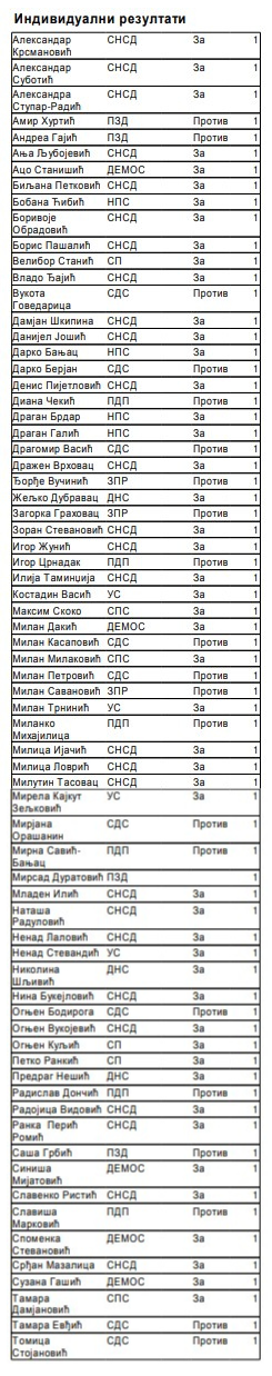 Za Nacrt Krivičnog zakonika čijem usvajanju se protivi novinarska zajednica i najrelevantnije međunarodne institucije glasali su sljedeći poslanici: