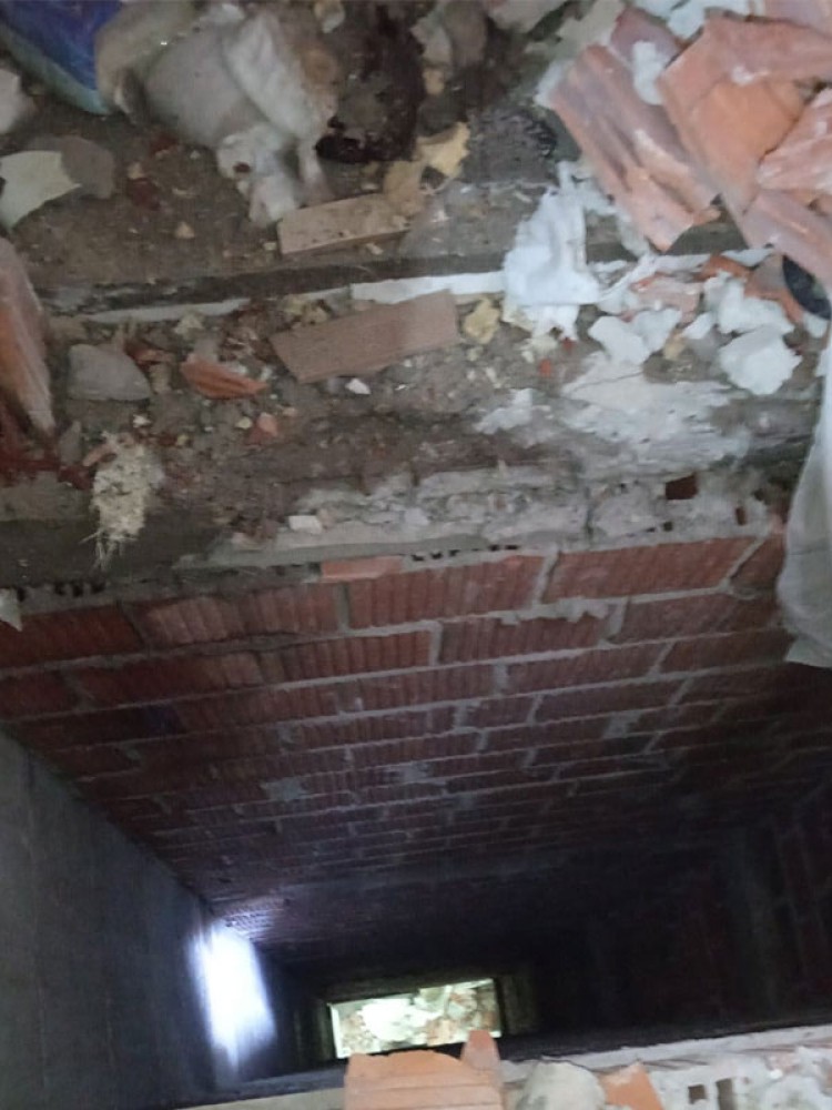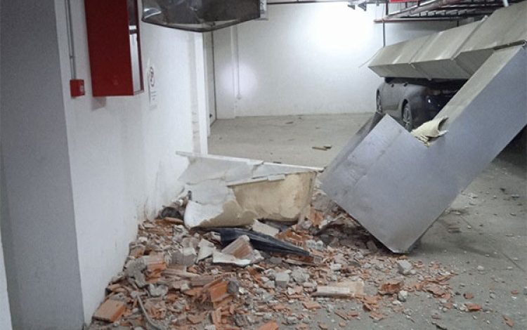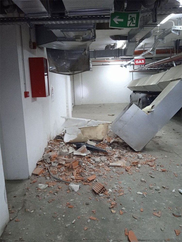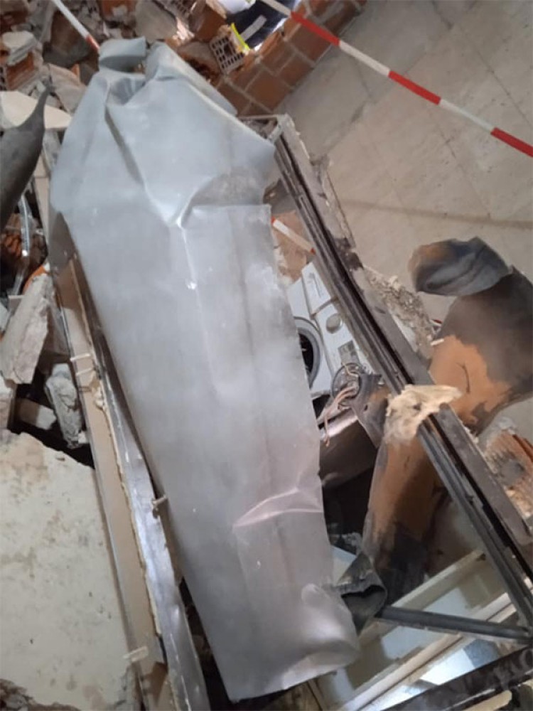 Osim stana, koji je gotovo potpuno uništen, štete ima i u garaži, gdje je dio ventilacije pao na vozilo.