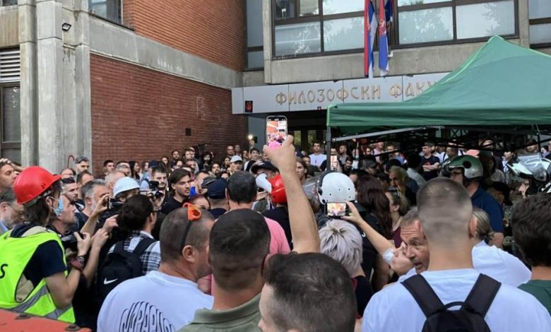 Ispred Filozofskog fakulteta u Novom Sadu izbili su sukobi i napetosti nakon što je dekan Milivoj Alanović pozvao policiju da interveniše protiv studenata koji su ušli u zgradu.