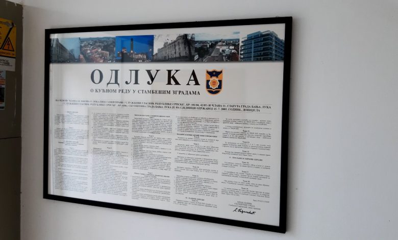 Prema Odluci o kućnom redu u stambenim zgradama, navedeno je šta su obaveze stanara, a između ostalog, da je od 22 časa do šest časova (zimi) i od 23 do pet časova (ljeti), kao i u vremenu od 14.30 do 17.30 obavezno poštovati vrijeme dnevnog i noćnog odmora “na način koji obezbjeđuje potpuni mir i tišinu u zgradi”. Navedeno je i da na oglasnoj tabli, 24 časa ranije, treba najaviti događaje i aktivnosti koje podrazumijevaju narušavnje kućnog mira kao što su proslave, glasna muzika i drugo, kao i opravke koje prouzrokuju buku.