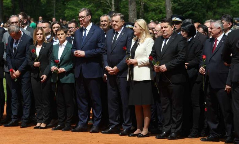 Vijenac i ruže položili su predsjednik Republike Srpske Milorad Dodik, predsjedavajuća i srpski član Predsjedništva BiH Željka Cvijanović, predsjednik Narodne skupštine Srpske Nenad Stevandić i premijer Srpske Radovan Višković, kao i predsjednik Srbije Aleksandar Vučić sa delegacijom Srbije.