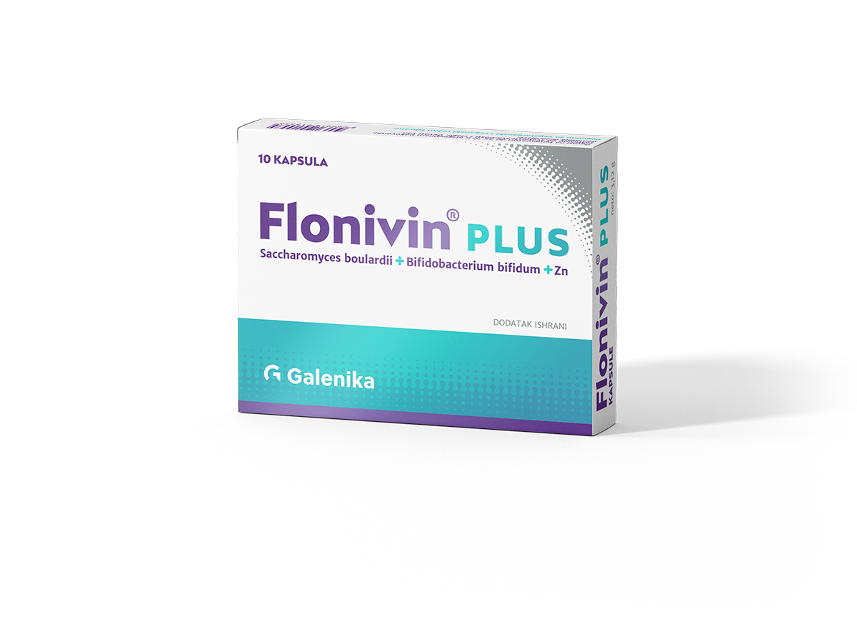 Preparat kompanije Galenika koji se predstavlja pravi izbor u svom sastavu ima 5 milijardi korisnih probiotskih kultura Saccharomyces boulardii i Bifidobacterium bifidum, sa dodatkom Cinka u dozi od 5mg i to je Flonivin® PLUS. Odličan je jer u svom sastavu sadrži kombinaciju gljivice, bakterije i mikroelemenata, te je dobar za normalizaciju crijevne mikroflore zato što bakterije i gljivice sprječavaju naseljavanje štetnih bakterija, smanjuje nadutost i reguliše stolicu, a Cink dodatno jača imunitet. Samim tim preparat je pogodan nakon upotrebe antibiotika, za poboljšanje imuniteta cijelog organizma, kod akutnih dijareja, ali i kod upornih zatvora.