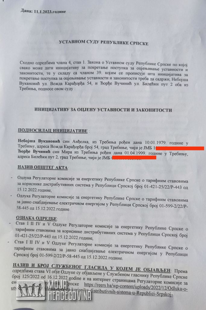 Na skupu je rečeno da je danas predata apelacija Ustavnom sudu Republike Srpske koju, kao podnosioci, potpisuju Nebojša Vukanović i Đorđe Vučinić, a u kojoj je, na 14 strana, obrazložena neustavnost odluke o uvođenju blok – tarife, a od Ustavnog suda se očekuje da ocijeni ustavnost i zakonitost odluke koju je Regulatorna komisija dozvolila, a koja je, po mišljenju mnogih, sprona i neustavna.