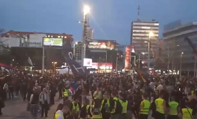 Zato je, kako javlja dopisnik RTS-a, na protestu na Trgu republike najavljeno da će biti održano nekoliko govora posle čega su učesnici skupa pozvani da krenu na Ušće gde bi trebalo da se sretnu sa kolonom iz Zemuna.