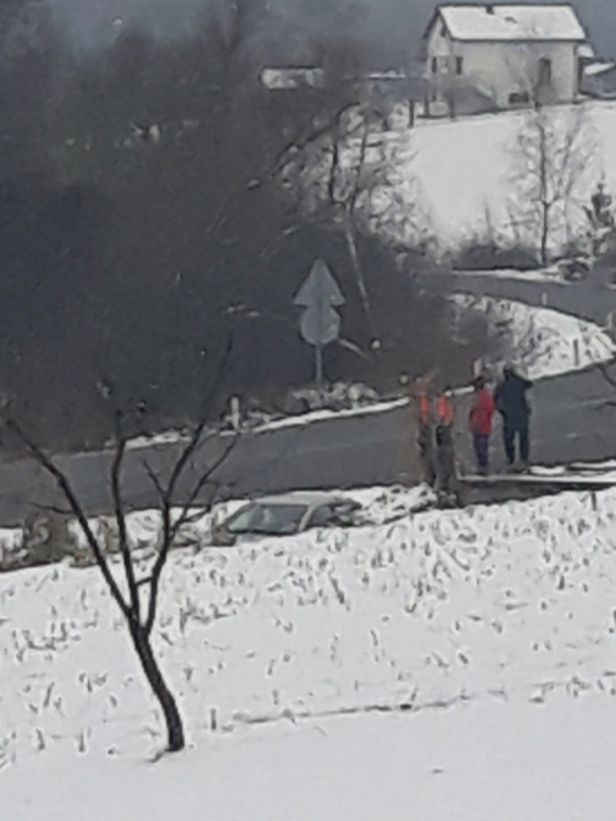 Na mjestu nesreće su se okupili mještani da pomognu vozaču i trenutno se čeka na pomoć da izvuku vozilo iz kanala.