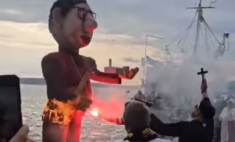 Spaljena lutka sa likom Aleksandra Vučića u Hrvatskoj (VIDEO)