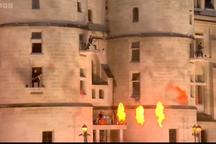 U pozadini se održavao nastup hevi metal benda kojim se slavi revolucija i borba za slobodu kraj Sene.