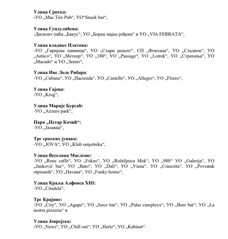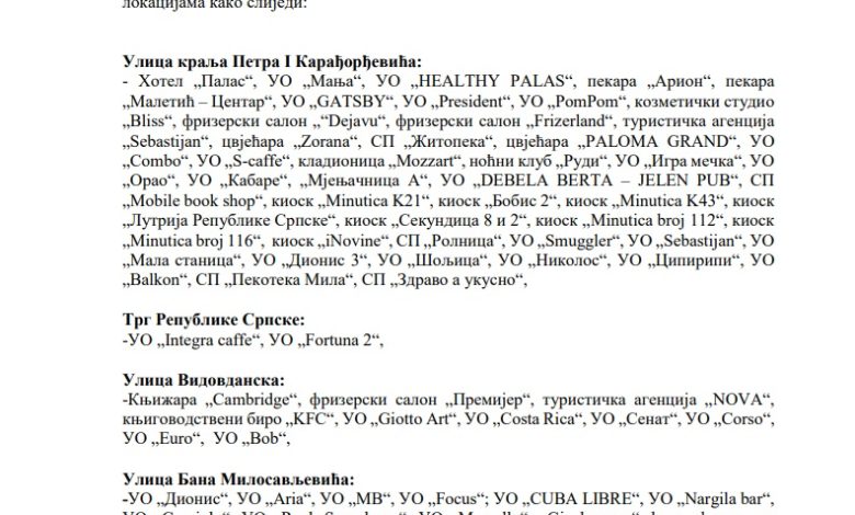 Spisak ugostiteljskih i drugih objekata koji neće raditi 9. januara